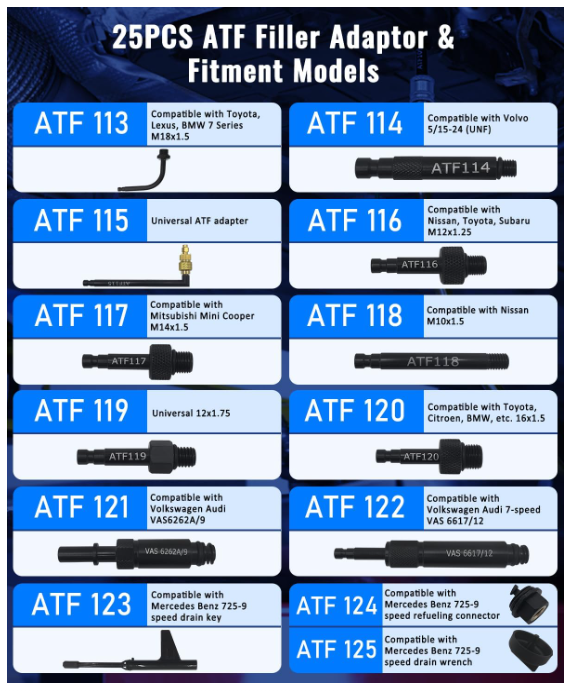 The Patented Power Xtreme™ Quick Transmission Fluid Changer is the latest technology in automatic transmission fluid (ATF) changing machines and is able to exchange automatic transmission fluid directly from the transmission fill tube. It can be used on vehicles equipped with an automatic transmission, including cars, trucks, SUV's, boats, and RV's. It is easy to use, keeps your hands, clothes, and work floor clean and is environmentally safe. The Power Xtreme 9 comes with Free 24/7 Tech Support; also a standard one year warranty and other special programs are also available.